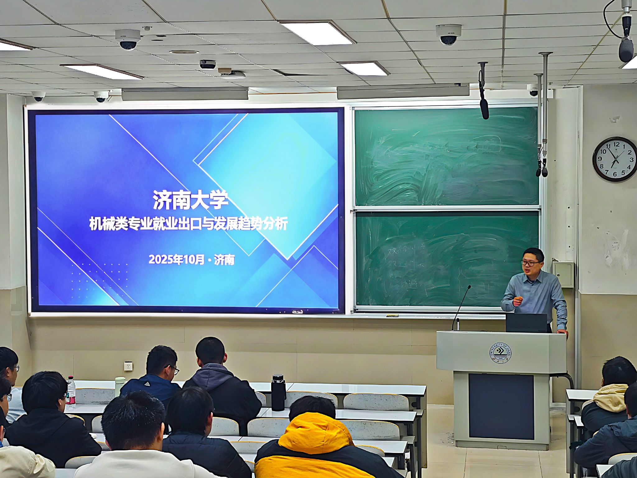 在自由交流環節,同學們圍繞“如何選擇第一份工作”“考研與就業的權衡”等問題踴躍提問。袁廣濤結合行業趨勢與個人經驗逐一解答,現場氣氛熱烈。