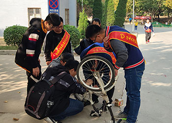 付出比收獲更快樂,給予比接受更心安。為讓方便老師、同學出行,貫徹服務他人宗旨,弘揚志愿精神嗎,機械工程學院義務修車隊于11月2日在南苑第九食堂路口開展義務修車活動。