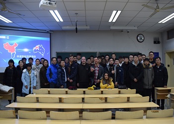 交流會的氣氛輕松愉悅,留學生們從當?shù)孛朗场⒈就羷游铩⑻厣\動幾個方面熱情地為機工同學介紹了澳大利亞的風土人情,同學們對此抱有極大興趣,全神貫注地聆聽著。在介紹的過程中,澳方留學生細心地準備了視頻,以別有風趣的方式讓機工同學對澳大利亞深厚的文化有了更為清晰的認識,體會到澳大利亞文化氣息。隨后在老師的指導下,中澳雙方學生進行了一次近距離的溝通交流。交流過程中,機工同學踴躍提問,澳方學生耐心地一一回答。時光飛逝,活動不知不覺已接近了尾聲,但中澳兩方的學生仍然意猶未盡,在歡聲笑語中交換了聯(lián)系方式,并拍下了合照,為此次活動劃上一個圓滿的句號。