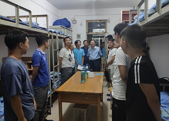 金風送爽開學日,君當憐惜少年時。新的學期,新的開始,對于即將步入大學生活的新生們來說,更是至關重要的時刻。為了進一步做好新生入學的教育工作,幫助新生適應大學生活,機械工程學院黨委書記程濤,院長曹樹坤,副院長付秀麗以及學院相關輔導員、班主任老師于9月1日晚上走訪了學生公寓,慰問2019級新生。
