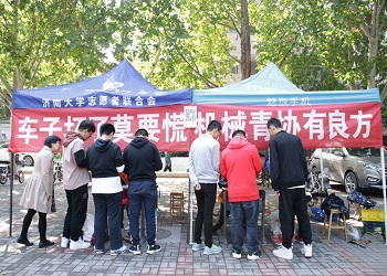 10月13日,為慶祝機械工程學院青年志愿者協會義務修車服務隊成立29周年,青年志愿者協會在八食廣場舉行了“修車隊29周年,與你并肩”義務修車活動。